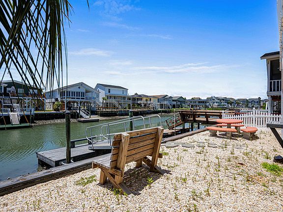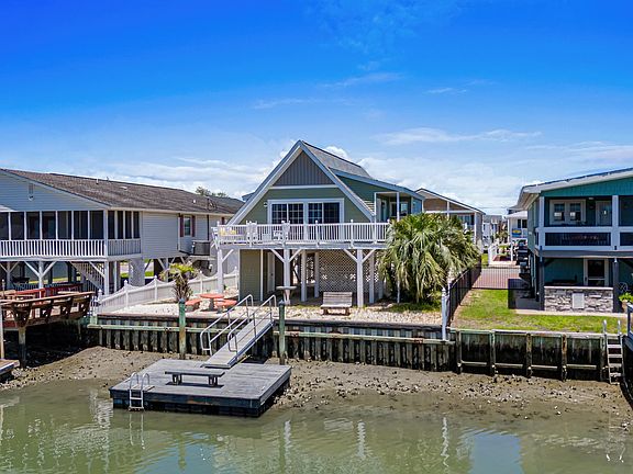 This charming 3-bedroom, 2-bathroom house is nestled on the Channel in the desirable Cherry Grove section of North Myrtle Beach near the ocean. A BOATERS PARADISE!!! SHORT TERM RENTALS ARE ALLOWED!!! A Motivated Price, leaving room for any upgrades to make it YOURS!!! Walk to the Beach or golf cart ride to the Pier. The living and dining areas boast a vaulted ceiling, lots of Natural Light and tile flooring throughout. Open Floor Plan and Sliding doors lead to a Spacious rear balcony which offers breathtaking waterfront views, perfect for relaxing or entertaining. Both the master bedroom en-suite and the first guest bedroom have convenient access to the front balcony. Three bedrooms on the main floor which is the second floor of this A-Frame Bungalow!!! Lots of storage and a Loft that could make a Fun area for the kids... blow up mattresses and a space to themselves... Just have to be agile to climb the ladder. The bottom level is great for cooking out and hanging out with plenty of space for entertaining. This area can be another room on the home. Recent updates in 2023 include a new roof, vinyl siding, driveway, front deck, a new dishwasher, new vanities in bathrooms, and fresh paint. The property features a private dock with bulk head on the Channel, ideal for boating enthusiasts. With no HOA fees and just a few blocks from the beach and the Cherry Grove Fishing Pier just 1.5 miles away, this home offers the perfect blend of comfort, style, and coastal living.