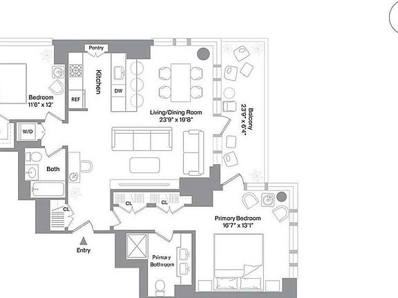 Corner Unit Facing South & West. Floor to ceiling windows offering expansive City views. The bright, open layout features a spacious living and dining area, complemented by soaring 10 ft ceilings and abundant natural light, a massive 23-foot-wide balcony and in unit washer and dryer. The chef's kitchen is equipped with premium stainless-steel appliances, granite countertops, and custom cabinetry. This apartment also comes equipped with Bielle wood floors and beautifully tiled bathroom with Kohler fixtures.