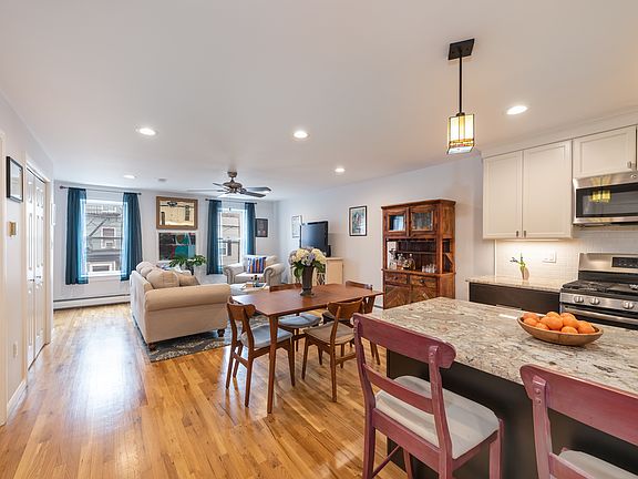 Occupying an entire floor, this gorgeous and spacious Two Bedroom condominium residence features a fantastically open floor plan. The recently renovated kitchen is equipped with custom cabinetry, granite countertops, stainless steel appliances and a large center island. The expansive living & dining area is bathed in natural light with three windows to the street and accommodates a home office. Both bedrooms are in excellent proportions and open up to the unit's sizable outdoor deck. The residence is further appointed with a large, recently redone laundry room, ample closets, split air-conditioning in bedrooms and a through-wall AC in the living room. The intimate three-story building is ideally located near restaurants, bakeries, shops, PATH station, parks and schools. A rarely attainable parking spot is included in the sale, and the low common charge is an added bonus.