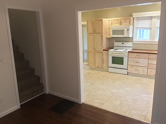 Large 4 bedroom, 1.5 Bathroom, 1820 ft2 single family home with garage for rent in the City of Watertown. The house has carpeted/laminate wood floors throughout and tall ceilings with beautiful recessed lighting. The 1st floor features a front entryway/mud room, large living room, den/office, a dining room that leads to a large kitchen with plenty of cabinets and counter space as well as a bathroom that exits out onto a private covered patio for grilling and entertaining. The fully carpeted 2nd floor features 1 master bedroom with his and her closets, 2 large bedrooms, a medium size bedroom. All of the bedrooms have closets. There is also a large hallway linen closet next to a beautifully tiled full bathroom with a combination tub and shower unit. The dry basement in the home has washer and dryer hook ups. This home has been equipped with a new gas furnace, on demand water heater and updated wiring and plumbing. There is a large fenced in side yard and a second back yard for use as well as a large covered front porch for sitting. The house is within walking distance to churches, shopping, high schools, middle school and elementary schools, SMC hospital, downtown & playgrounds. There is off-street parking and a 1 stall garage. The monthly rent is $1350.00 plus utilities. An equal to rent security deposit required. Text James at anytime and leave a message to set up a showing or for more information on this great Single family home! Pets considered. No indoor smoking. 325 Arlington Street Watertown, NY 13601 The monthly rent is $1350.00 plus utilities. An equal to rent security deposit required.