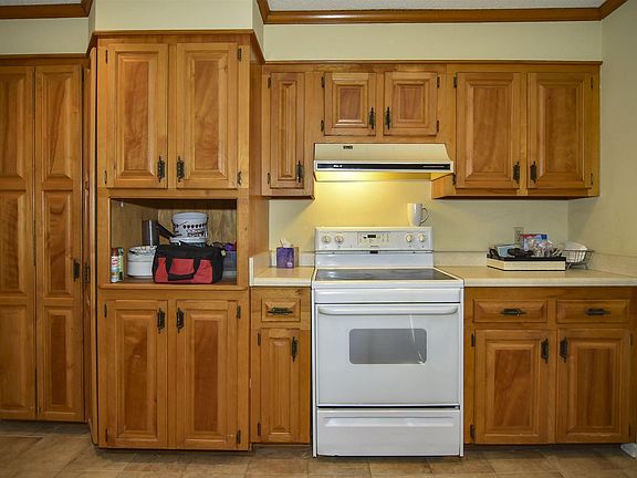 - Kitchen: Bar, Counter Tops-Formica, Eat In, Floors-Tile, Cabinets-Stained