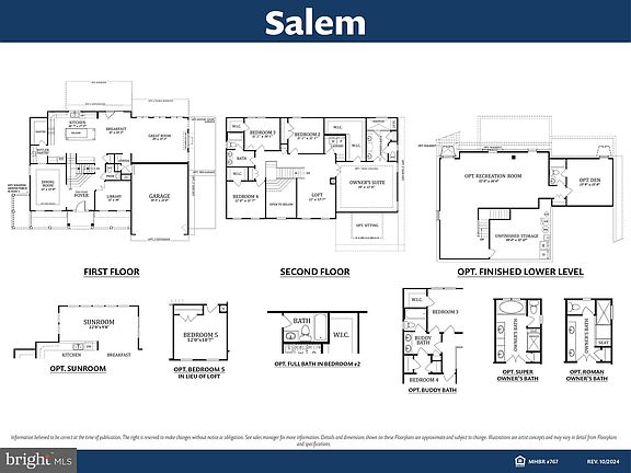 As you walk into the gracious Salem you are greeted by a large open foyer. The whole first floor feels as if it is one open space as you easily move through the dining room, kitchen, breakfast, and great room. Each room flows effortlessly into the other giving the whole home an open and airy ambiance. The Kitchen has a tremendous amount of space with a plethora of cabinets, a butler pantry with adjourning walk-in pantry, and a kitchen island; therefore making storage and organization plentiful and entertaining easy and manageable. The first floor also features a private library, perfect for use as a home office or playroom, an arrival center, and a powder room. Add even more comfort and luxury to the first-level spaces with optional add-ons like a gas fireplace in the great room, a large gourmet kitchen island, a wet bar in the butler pantry, or expand the dining area by adding an optional Sunroom. The second floor includes the Owner's Suite, 3 additional bedrooms, a full bath, loft, and laundry room with ample counter space. The Owner's Suite with an expansive bedroom features a dual-area walk-in closet. Through double doors, you find the Owner's Bath, which has double vanities, a large shower, and a water closet. The second level loft has optional floorplans to accommodate a 5th bedroom or to extend the Owner's Suite through to an attached Owner's Retreat, with enough space for use beyond its intention. This home design offers a wide variety of options and extensions making it easy to create the home of your dreams.