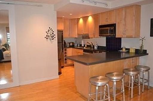 This bright sunny Move in ready studio in the Back Bay has an amazing layout with a large private patio. This unit is perfect, large kitchen with stainless steel appliances and a breakfast bar for seating , oversized windows with high ceilings, hardwood floors, working fireplace, and even comes a Queen size Murphy bed. Heat and hot water are included in the rent. Laundry is conveniently located next to the unit. Pet friendly building. Rent includes Heat and Hot water