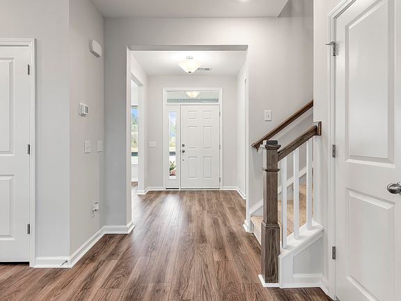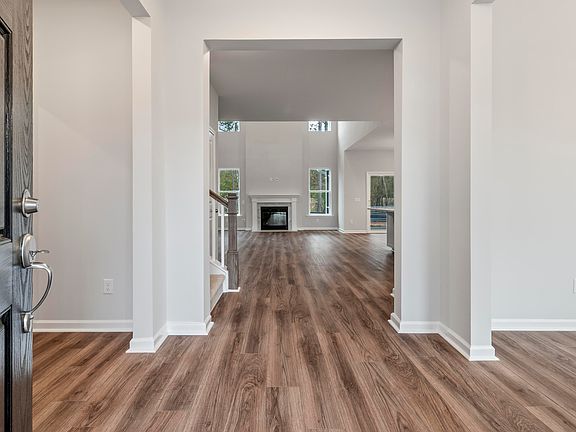 Introducing the captivating Raleigh floor plan, designed for modern living with its inviting open concept layout. Step into an airy foyer that seamlessly transitions into a spacious dining room. Beyond lies the heart of the home, featuring a family room with a stunning cathedral ceiling, kitchen, and breakfast area, perfect for gatherings of all sizes. The kitchen boasts sleek white cabinets and stylish quartz countertops, while a cozy gas fireplace in the family room adds warmth and charm. Step outside to the screened porch, offering an ideal spot for entertaining or unwinding. Retreat to the owner's suite, complete with a luxurious shower surrounded by elegant tile accents. Experience comfort and sophistication at its finest as you create new memories of home.