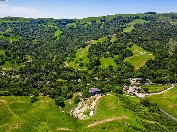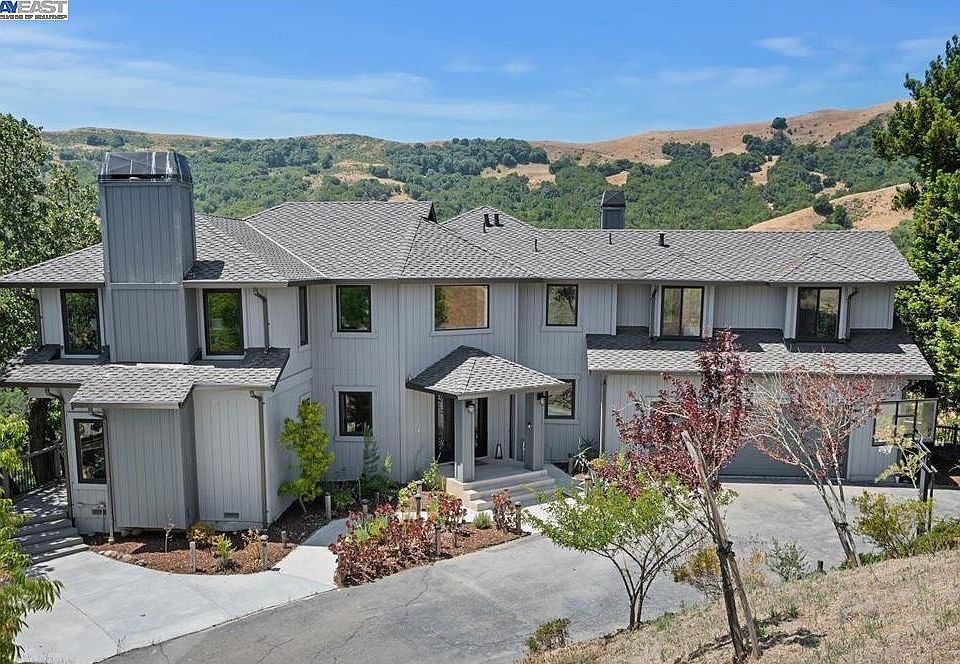 2.25% 30-yr mortgage assumable by qualified buyers. Located in an exclusive gated community and perched atop a scenic hill, this 2022-renovated retreat sits on 5 picturesque acres, blending luxury and nature just minutes from town. The 3,500 sqft home offers 4 bedrooms, 4.5 bathrooms, an office, panoramic valley views, privacy, and backs to over 2,500 acres of parkland. High-end finishes include a hand-forged iron staircase and floor-to-ceiling windows that frame the landscape. The chef’s kitchen features a stainless steel refrigerator, six-burner range with griddle and pot filler, double ovens, microwave, quartz waterfall island, and custom cabinetry. The dining room opens to the outdoors through glass doors and includes a stone counter for entertaining. Bedrooms feature CA Closets and spa-like bathrooms with floor-to-ceiling tile and heated floors. The primary suite has a walk-in closet with illuminated displays, dual vanities, and hillside views. A second en-suite offers privacy for guests or multi-gen living. Expansive wraparound decks reveal views of Bollinger Canyon and lead to a sunroom with sink and stainless counter, perfect for hobbies. A generator provides energy backup. Adjacent lots 315 & 0 Bollinger Estates Ct may be purchased together as a rare 17-acre estate.