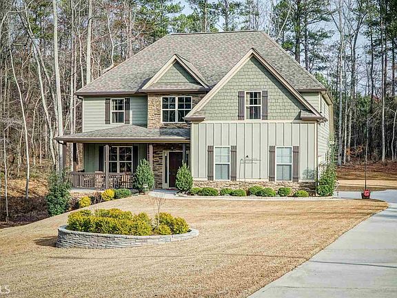 Wonderful home in desirable Fayette County! 5 Bedroom/3.5 Bath craftsman home in cul de sac boarding 6 wooded acres of greenspace! Rocking chair front porch, lots of hardwood floors, neutral carpet thru out! Granite Counter Tops, stainless steel appliances and large breakfast bar! Separate dining room with beautiful coffered ceilings. Kitchen opens to spacious family room with a cozy fireplace! Owner's suite on main with large sitting area. Owner's bath has tiled floors, dual sinks, garden tub and large walk in closet! Laundry room is on main level. Upstairs there are 4 oversized bedrooms with 2 large full bathrooms! Huge teen loft area for study or entertainment upstairs as well! You will love this home!!!