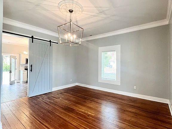 Move-in Ready home in the popular Mill Village! Fresh paint, newly finished hardwood flooring, wood look vinyl flooring, sliding barn door, new light and plumbing fixtures. Kitchen features white shaker cabinets, marble-look countertops, all new stainless steel appliances and double doors to wood deck with trellis. Large backyard, storage shed and new gravel driveway. Walking distance to downtown!
