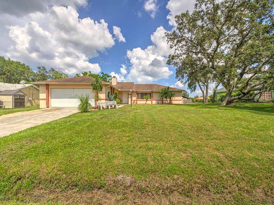 Beautiful 3BR 2BA remodeled home in a great location in NE Palm Bay. This home has many nice features & has been beautifully redone. The eat-in kitchen has nice white cabinets with granite countertops and beautiful backsplash. Split plan, vaulted ceilings; Living Room & dining room combo with wood laminate flooring. Open floor plan with tons of natural light & tile throughout the kitchen and family room! Large Master suite is carpeted; Master bath has a large walk-in tiled shower. Beautiful fireplace in the cozy family room. Newer carpet in one guest bedroom. Guest bath completely remodeled. Fresh paint. Large screened covered porch. Spacious backyard, partially fenced.