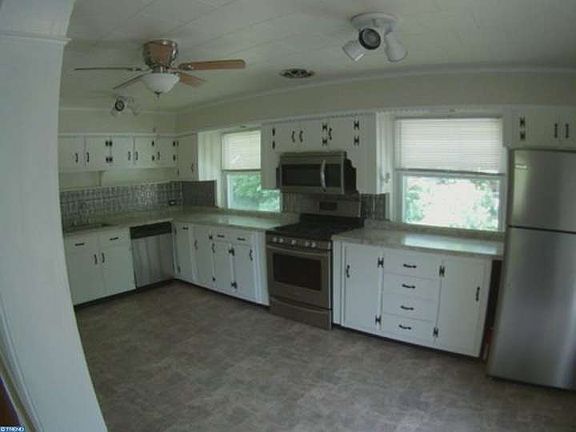 Move-In Ready! Nicely done rehab with new appliances, bathroom, new windows, finished hardwood floors, builtins and chair rail in Living Room. Large Deck overlooking stream at rear of property (not in flood zone per Twp). Fenced yard, new gas line to home, central air. Convenient location. Possible additional living space if you enclose garage.