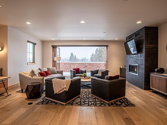 Prime Central Avenue location in the heart of Downtown Whitefish. Enjoy the privacy and birds eye view of this brand new 3rd floor loft. Beautiful, clean lines, and modern design elements are used throughout this furnished condo. The condo has 3 bedrooms each with a private en suite. The executive condo is a large space and takes up the majority of the 3rd floor so there is plenty of room to spread out. The living room and master bedrooms feature gas fire places and large TV's. The other two bedrooms both have electric fireplaces and TV's. The tiled bathrooms all have heated floors and all window blinds are controlled by remote control. Enjoy the view of Big Mountain from the front deck, while soaking in the hot tub or from the private rooftop patio! The Suite is located on top floor of a 3 story building. The first floor features three commercial spaces. The second floor has two residential units and the third floor has the one bedroom suite and a three bedroom penthouse. A control access on the stairs and elevator limits access to the third floor to 3rd floor residents only. Month to month lease or one year lease available at discounted rate. Please contact for details