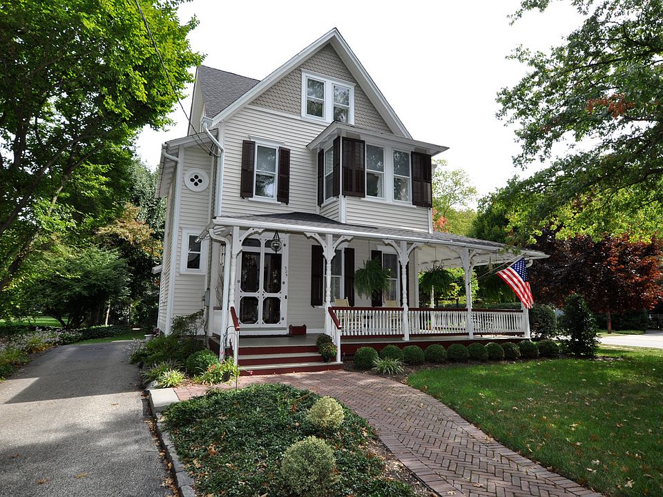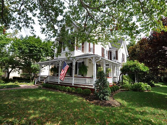 That "Mayberry" feel...Gorgeous classic Victorian snuggled on a wonderful street just a quick walk from Main Street. Slow down and enjoy a lemonade on the porch and watch the world go by. Enter into the commanding foyer that features restored natural chestnut woodwork, double doors, inlaid floors, a gorgeous original chestnut staircase, and 9' tall pocket doors. A terrific floor plan for entertaining, large formal gathering room (library parlor opens to an expansive great room which then opens to the sun soaked dining room with classic corner china cabinet. The jewel in the crown--Fully updated APPLE kitchen with gleaming granite, breakfast bar, handsome sawn oak cabinetry with smooth close drawers, low maintenance tiles, and stainless appliances. The adjacent Butler's pantry provides plenty of storage and counter space. The ample laundry room is conveniently adjacent-on the main floor. Upstairs, so charming...the 3 bedrooms are well sized with good natural light and good storage. The master features a convenient dressing area and large closet with access to the bath. The full bath has a vintage tub and is light and airy. A home office and linen closet round out this floor. Need MORE space?? Could be a tween retreat or man cave... Up to the third--2 additional bedrooms flex space and a quarter bath (easily modified to create an additional full bath. Need storage? No worries--A huge basement. Step out back to see extensive landscaping and a lovely hardscaped patio. 2 car detached garage, 2 paved driveways, NEW ROOF to the rafters 2016, replacement gas fired furnace (2010), low maintenance vinyl siding and newer Bradford hot water heater. This is the one....phone the relatives....