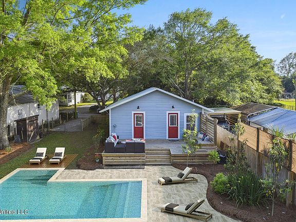Opportunity abounds with this FAB historic gem- formerly the train conductor's house! Situated just two blocks from the beach, on a wonderfully landscaped lot, this cottage may be the escape you're looking for. Meditate-Lounge-Conspire on one of three porches with each exuding a different vibe. Read on one, entertain on another- chat with neighbors as they stroll by. Ignite your inner artist within your own 240 SqFt design studio tucked away in the backyard. Grow your own vegetable garden and raise chickens if desired- it's already set-up! Or convert this space for more options. So close to the beach yet flood insurance is not required and with room enough to add a pool- you may never want to leave. Brand new metal roof, new Lawson's vinyl plank flooring throughout the home, and brand new exterior paint! Come and see this slice of heaven.- all it's missing is you! Pool is virtually staged and intended to show the potential of the outdoor area.