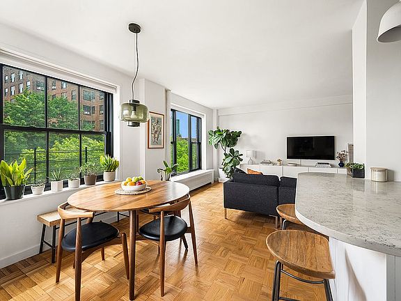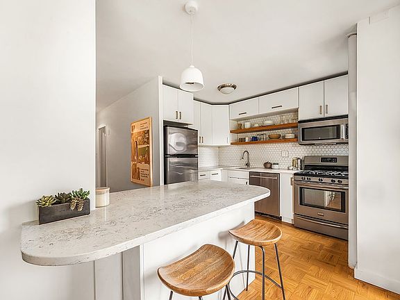 This light-filled, chic one-bedroom apartment (which has the potential for another bedroom, albeit a modest size) has undergone significant improvements, including an open kitchen, new modern light fixtures, and bathroom upgrades including a Toto toilet. The space was refreshed in January 2023 which included painting and updates to the flooring.