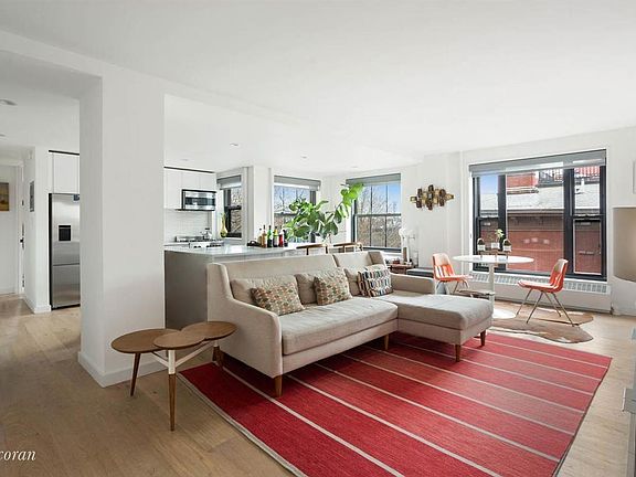 This impeccably renovated, loft-like home delivers bright light and views of brownstone Brooklyn from six oversized windows and two exposures. There are wide-plank, matte-finished oak floors throughout and pristine white walls for a modern gallery feel. At the center of it all is an oversized island providing space to prep and cook on the kitchen side and room for dining or work space on the other. The living room features a floating, built-in entertainment console along one wall, and a pop of graphic wallpaper in the entry by Brooklyn's Flavor Paper. The windowed kitchen boasts a Bertazzoni range, a stainless steel Bosch dishwasher, a slim Fisher & Paykel fridge with bottom freezer, a summit wine fridge, and an Ann Sacks tile backsplash with an architectural feel and a subtle matte finish. The corner bedroom has two large windows, built-in floating shelves, and plenty of space for a king size bed and a sitting area. The bathroom is outfitted with striated, gray porcelain tile and a sleek glass shower stall. In addition, there are custom closets from Transform, recessed overhead lighting throughout, two brand-new, top of the line Friedrich air conditioners, and Hunter custom blinds. The apartment sits above historic Clinton Hill on the border of Fort Greene, with easy access to trains (just 20 minutes to Manhattan). The building is part of the Clinton Hill Cooperative Apartments and has renovated laundry facilities, elevators, an on-site maintenance staff, 24-hour Security, bike storage, and a common courtyard. The G train is on the corner and the C is just three blocks away, but nearly every train in the system can be found nearby. Neighborhood amenities include some of the best restaurants in the borough along Dekalb Avenue and Myrtle Ave and new attractions in the Navy Yard, including a ferry stop, Russ and Daughters, and Wegmans grocery store. Fort Greene Park, two farmer's markets, BAM, Pratt Institute and sculpture garden, City Point, Barclay's Center, plus the newest Whole Foods and Apple store are within minutes. Pets are Allowed! Pied-a-terre OK Sublets permitted after two years of ownership Wired for Fios The Clinton Hill Co-ops are Smoke Free Buildings. Courtesy of Corcoran