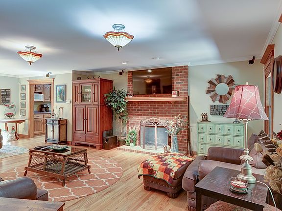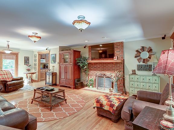 Peace & Quite! Your own hilltop hideaway on 3.8 acres. Nestled in the woods , this home boast space & the love for the out doors. All brick home with 3 bedrooms & 2.5 baths, fireplace, two office/craft rooms-oversized bonus room, lots of charm of a country home. Rocking chair front porch out front & large deck at rear of home, full unfinished basement for projects or expansion. Contingent Contract in place. Seller will consider backup offers, continue to show with approved appointment.