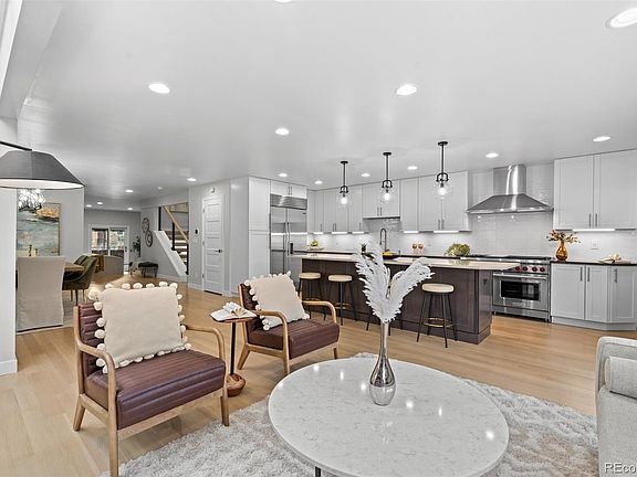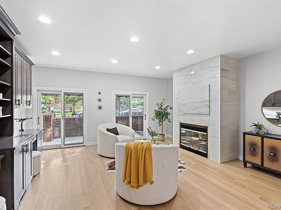 Nestled mid-block, in a fabulous location in Cherry Creek North is this recently updated townhome featuring timeless finishes in an open layout. Wider than most new TH/duplexes being offered in the neighborhood, you will enjoy wide plank Allegheny white oak floors thru-out the main level, upper hall and on the cable railing staircase. Off the entry is a living room/library with built-in's, fireplace and double sliders to the front patio. A chef's kitchen impresses with white shaker cabinetry, quartz counters, SubZero fridge, 48" Wolf gas range with 2 ovens and SS griddle, MW drawer, Bosch dishwasher. Showcase your favorite glassware and serve your guests from the dual zone french door beverage center. The oversized island is perfect for engaging with family and friends. A contemporary electric fireplace with crystal stones is at the center of the family room. The upper level is home to a large primary suite, walk-in closet with built-ins and bath designed with dual vanities and spacious walk-in shower. Two additional bedrooms with ample walk-in closets each have there own sliding door to the front balcony. The hall full bath features natural quartz countertops and a subway tile surround. On the lower level find a large flex space, perfect for a media room and a fitness space, plus a generous guest suite and laundry room(washer/dryer included.) Storage space is located under the stairs. Large egress windows provide additional natural light. Enjoy relaxing on the partially covered back patio. Find ample storage in the loft of the oversized 2-car garage with high ceilings. Furnace, humidifier installed Dec. 2022. New water heater in Dec. 2023. Front and back balconies recently updated with iron and Trex. HOA covers exterior insurance, maintains exterior, snow removal, all grass and landscaping outside the fence. Truly a low maintenance lifestyle in a sought-after neighborhood with so many restaurants, galleries and shops to enjoy just a few blocks away.