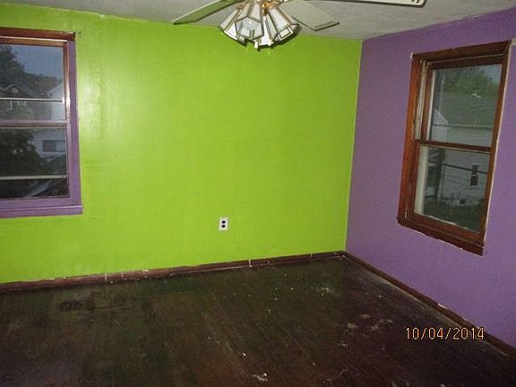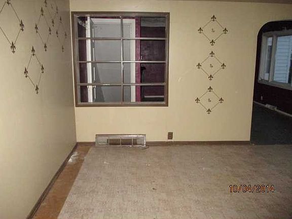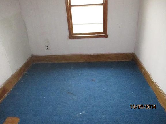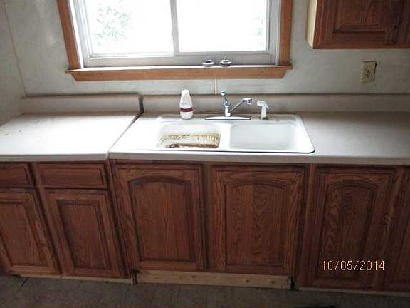 SFR with basement; upstairs there is 2 BR’s with poor carpet, fair walls and ceiling, 1 BR with hardwood floor, poor ceiling has a leak; 1 bath with poor linoleum flooring, garden tub, sink, and toilet; on the main floor there is a living room with poor laminate flooring, fair walls and ceiling; kitchen has poor linoleum flooring, fair cabinets with no sink or fixtures, fair walls; Water heater, furnace, fuse box, wiring, plumbing, gas and water meter intact; no AC unit. $600 move-in fee and $325 per month or $12,000 cash