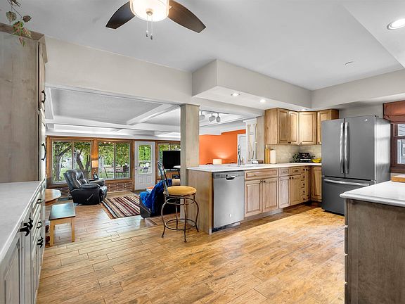 Showings to begin on 10/25/23 at 9 am. From the moment you step inside this home, it's clear that this property has all the amenities to entertain inside and out. As you explore, you'll discover a host of luxurious amenities including the newly remodeled kitchen with granite and marble counters, stainless appliances, and wood look tiled floors. The large family room features wood burning stove, indoor grill, mudroom access, and beautiful views of the park-like backyard. The main floor also boasts a master suite with an electric fireplace and a sliding door leading to a private deck. Rounding out the first floor is a second bedroom, updated full bath, and a living room/dining area with a cozy fireplace. Venturing to the second floor you will find two large bedrooms connected by a jack and jill style bathroom. The basement offers a second kitchen area and spacious family room. Going outside you will find a private oasis complete with basketball court, fully fenced yard, fire pit, screened in porch off the storage shed, electrical hookups for a camper, and lovely perennial gardens. For car enthusiasts or those who simply value extra space, there are two double garages. The options are endless with this beautiful property. New roof on the house/and part of the second garage September 2023, new siding to be installed this fall on the north and east sides of the house. Chimney repaired and new insert in 2022 with many other updates. This is a rare property in the heart of Waterloo. Book your showing today.