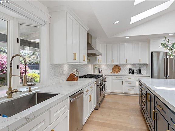 - Features: 220 Volt Outlet, Breakfast Bar, Breakfast Nook, Counter - Solid Surface, Dishwasher, Eat-in Kitchen, Disposal, Gas Range/Cooktop, Kitchen Island, Microwave, Oven Built-in, Pantry, Refrigerator, Skylight(s), Updated Kitchen, Wet Bar