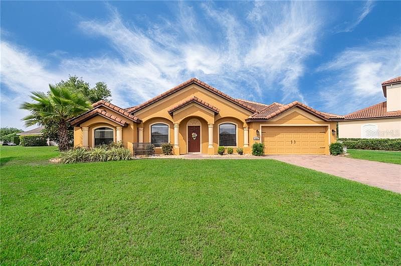 Priced reduced for a well maintained 3 bedroom 2 bathroom home with an open floor plan and 10 foot ceilings. Ceramic tile, laminate floors in the main areas, and carpet in the bedrooms, upgraded light fixtures through-out. Kitchen features stainless steel appliances with a gas stove, tile back splash, and tile on the breakfast bar. Spacious living room and a formal dining room and den. Cable outlets in every room. Extra large Master bedroom, Master bath features dual sinks, garden tub, tiled walk-in shower, & large walk-in closet. Roomy guest bedrooms, separated by a guest bathroom w/linen closet. This home also features a huge back yard with a large patio, gas water heater and heat with a great view of Lake Griffin from the front yard and paver driveway. This home is close to shopping, restaurants and major roads and by-ways. Just minutes to Historical Downtown Mount Dora, "American's Seaplane City" in Tavares. Just a few minutes from Leesburg International Airport, Leesburg Regional Hospital, The Villages, & 1 hour commute to Orlando to all the Theme Parks! Call today for a private tour.