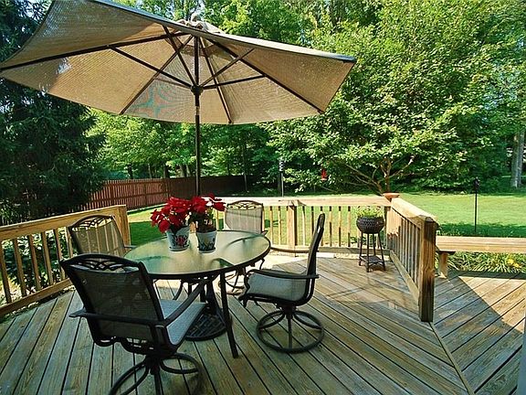 What a beautiful home! No need to look any further because this one has it all! Great curb appeal (even after dark thanks to the custom outdoor lighting) is just the beginning. Over 2600 square feet of open and airy living space located on a large, wooded .68 acre lot. Completely neutral and absolutely spotless, this 4 bedroom, 3 full bath home has so much to love including: Large remodeled eat in kitchen with Corian countertops, stone backsplash and under cabinet lighting. All appliances stay; Remodeled baths; Large first floor laundry room; First floor den/office; Beautiful master bedroom with vaulted ceiling, walk in closet with "California Closet" system and gorgeous master bath; 3 additional bedrooms all with "California Closets"; Extra large 2+ car garage; Huge full basement; New roof in '09; And it all comes with a Home Warranty! Nothing to do here but place your furniture! Come and see for yourself!