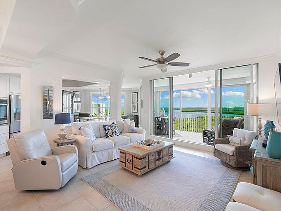 Welcome to your luxury coastal paradise at The Dunes of Naples, where breathtaking Gulf, bay, and mangrove views surround you. This exquisite 3-bed, 2-bath condo offers picturesque vistas of Turkey Bay and the coastline, perfectly wrapping around the Gulf for stunning sunset views. What makes this unit truly exceptional? All special assessments have been taken care of, and it features a brand-new A/C system and hot water tank! Step inside to a grand entry foyer adorned with volume ceilings and elegant shiplap walls, leading to an open-concept living space. The condo is updated throughout, featuring crown molding and hurricane impact floor-to-ceiling sliders that open to a spacious screened balcony—ideal for savoring the serene surroundings. The gourmet kitchen boasts quartz countertops, contemporary cabinetry, stainless steel appliances, and even a wine cooler. Enjoy resort-style amenities at The Dunes of Naples, including a pool and spa, fitness center, cabanas, tiki bar, indoor-outdoor dining, tennis, and tennis pro shop. Experience unparalleled luxury and coastal living in this magnificent condo—your dream home awaits.