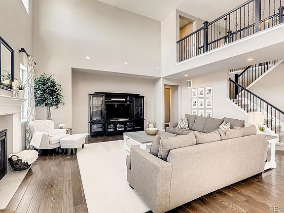 MOUNTAIN VIEWS!!! This Richmond American home (Dillon model) is in fantastic condition and is ready for its next owner! This home features a formal dining, wet bar, kitchen with a walk in pantry/island/desk area and a 2nd dining space. The kitchen overlooks a grand great room with tremendous ceiling height. On the main level you will find the office, 1/2 bath, laundry with built in cabinets and utility sink and a large coat closet. Upstairs are 4 bedrooms and 3 bathrooms. The Master features beautiful coffered ceilings, a 5 piece bathroom and large walk-in closet. The great thing about this floor plan is that all 4 bedrooms do not share a wall. The walk-out basement has 9-foot ceilings and is over 1600 sf and ready for you to finish it out to your liking. Rough in plumbing is present. This is one of the only lots with unobstructed mountain views AND it sits in a cul-de-sac. The neighborhood features miles of walking paths, pool (another pool is set to be constructed), gym, clubhouse. Colliers Hill HOA offers multiple neighborhood gatherings throughout the year and events for families with kids of all ages. CALL FOR A PRIVATE Tour today!