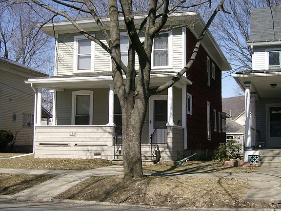 So much to this beauty! Beautiful wood floors: maple, hickory & oak. The pluses: draperies are custom made; thermo tilt out windows; granite counters in kitchen plus handmade glass fronts in kitchen cabinets which are made of hickory wood; TV in kitchen stays; all the bedrooms have cable; 1st floor bedroom, 1st floor bath has Jacuzzi tub; blueberry, raspberry & horseradish bushes; newer sheet rock; 2nd kitchen upstairs with appliances; 2 car garage with alley access! This home can be a single family or an income-generating two-family. Come, see & let your imagination be ignited.