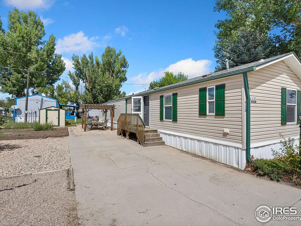 Welcome to your new home in beautiful Ault, Colorado! This spacious 4-bedroom, 2-bathroom residence offers modern amenities in an all ages community. Step inside to discover a brand new washer, dryer, and fridge, making your move-in process a breeze. The home features stylish LVP flooring in the kitchen and one of the 4 bedrooms, while plush carpeting provides comfort throughout the rest of the house. Enjoy the benefits of the low lot rent, situated in a welcoming all-ages community. The expansive lot is perfect for outdoor fun, with ample space for a swing set or trampoline. The property also includes an outdoor pergola, complete with a table and 5 chairs, as well as a convenient storage shed. This home offers a fantastic blend of comfort, value, and community. Don't miss the opportunity to make it yours!