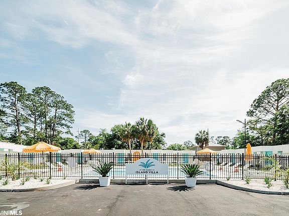 This is a rare opportunity to own a second home, investment property, or primary residence at an affordable value at the iconic Island Villa. This is the first converted short-term rental property in the new Waterway Village District. The location is ideal and you are in the middle of it all: 5 minutes to the white sandy beaches, within walking distance of the State Park Trails and minutes to local coffee shop, yoga studio, eclectic shopping, dining and entertainment. There are at least 8 restaurants within easy walking distance, not to mention Gulf Shores' only Brewery. The new Pedestrian Bridge over the Intracoastal Waterway which should be under construction in 2023 is an easy walk away, and will be a game-changer for The Waterway Village District. The interior and exterior of the iconic Island Villa has been totally renovated. The complex has a new roof, fresh paint, landscaping, and a new iconic pool. This ground floor unit has been beautifully updated with features that include new LVP flooring throughout, new lighting fixtures, new ceiling fans, and is fully furnished down to the cookware and utensils (rent-ready). The bright, coastal color theme in the kitchen has a tiled backsplash and dining area with sliding glass doors that open to the patio. This 2-bedroom condo can comfortably sleep 6 people with a queen bed in the guest room, a king bed in the primary bedroom, and a queen sleeper sofa in the living room. Each unit has a view of the sparkling pool, access to laundry and ice machine facilities as well as the BBQ/grill area.