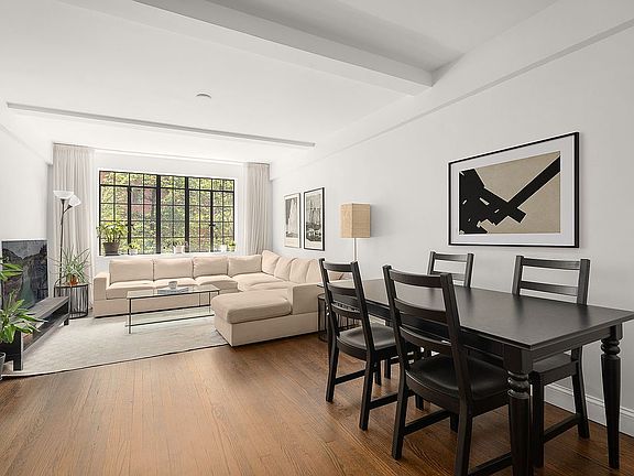 Welcome to Residence 502, a serene and spacious two-bedroom, two-bathroom home perched on the fifth floor of the iconic Essex House co-op. Blending pre-war charm with modern upgrades, this thoughtfully designed residence boasts high beamed ceilings, richly stained hardwood floors, and striking iron casement windows that fill the space with natural light.