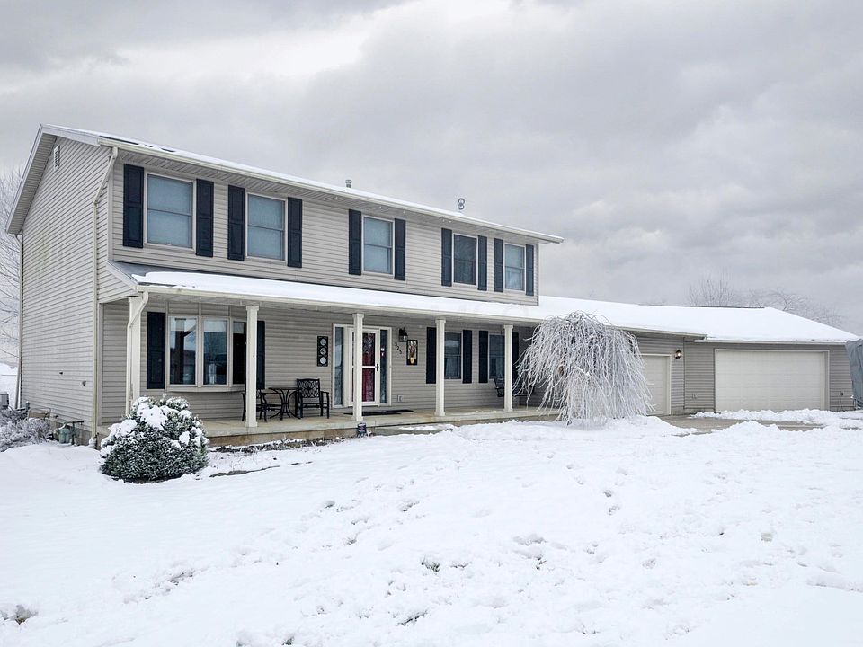 Very nice, over 2200 sq ft 4 BR, 2 1/2 BA 2 story home w/full front porch, attached 4 car garage & a huge, full, dry, ready to be finished lower level. Located on a large .54 acre lot (2 parcels) w/stream lining rear of property. Traditional floor plan. Large living room w/sun drenching bay window, formal dining room, well appointed country kitchen loaded w/ oak cabinets, all appliances & huge breakfast dinette. Cozy family room w/crown molding and a gas log fireplace, on a stone hearth. Upgrades & extras include 1st floor laundry, 6 panel doors on 1st floor, updated bathrooms, gorgeous hardwood floors throughout home, deck,oversized concrete driveway (room to park RV or boat) & more. Awesome location, quiet cul-de-sac lot, backing to Amanda Clearcreek Schools. Move in perfect condition!