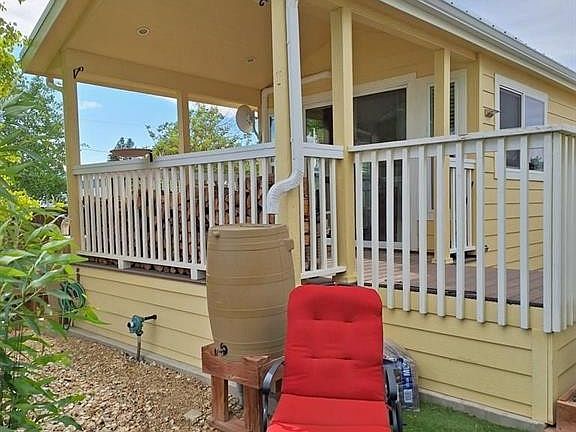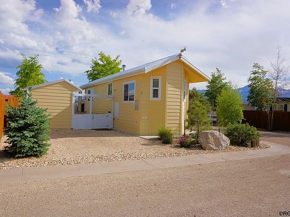 This custom Park Model Home in Silver Cliff will certainly impress you with all the added luxuries and features. The yard has a workshop or tool shed, whatever you prefer to call it with a garden and composter, artificial grass, fence, landscaping and a gorgeous view of the Sangre de Cristo mountains. The home and shed both are finished with a metal roof and hardie board siding. Inside you will walk in and see the wood burning stove for the cold winter nights and a mounted mini-split air conditioner for the hot summer days. The living room and breakfast nook are combined, and if you work from home, there is a desk with the back drop of the mountains out the west windows. The kitchen is complete with upgraded cabinets and extra storage as well. The bedroom has a ceiling fan and can fit a queen bed comfortably, but extra storage was also added in the closet for ideal organization. The 3/4 bathroom is completely full size and also has extra cabinets as well. The corner lot affords an amazing view from the porch, which was also an added upgrade. These homes are all owner-occupied, rentals are not permitted. Small pets are allowed as well. Don't miss out on this great opportunity! , Construction: Manufactured