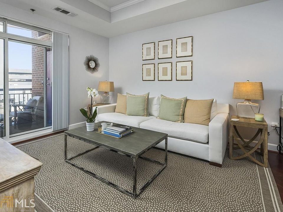 Located next to the shops of Buckhead this condo features trey ceilings, new light fixtures, designer paint colors, & walkout balcony. The kitchen is bright & clean with an open living space, white shaker cabinets, chrome pulls, subway style backsplash, granite counters & stainless steel appliances. The spacious bedroom includes a walk-in closet & off suite bathroom. The building interior has been completely renovated, with an amazing club room, pool, gym, & rare lofted tennis court with views overlooking the city. The building is situated walking distance to the best restaurants & nightlife Atlanta has to offer.
