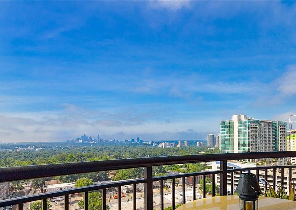 Enjoy unrivaled skyline views of Midtown from this exquisite 18th floor condo steps from fine dining and shopping at Buckhead Atlanta and the best that Buckhead has to offer! Meticulously maintained LARGEST floorplan includes eat-in kitchen, dining room that could double as office, & new hardwoods throughout. Spacious En Suite master spoils with trey ceiling, walk-in custom closet, and garden tub. Indulge in the pool, tennis court, fitness center, & newly renovated amenities. 24/7 Concierge, internet, balcony, 2 covered parking spaces, includes $10K/largest storage unit