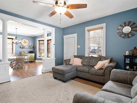 TONS of charm is this 1.5 story beauty! New front porch (2021). Upon entry you will love the 9ft ceilings and wood laminate flooring. Generous sized living and dining room with accent craftsman columns in between and wood encased windows providing tons of natural light. Spacious kitchen with an eat-in island and tons of counter/storage space along w/ access to your wrap around deck. Master on the main featuring en-suite that boasts wood accent wall. Upstairs you will find 2 spacious bedrooms adjoined by a full bath (tons of storage). Downstairs features additional family room, laundry, and incredible storage opportunities. Basement is walkout. 4 car tandem garage with additional basement for added storage/workshop. Massive fenced in backyard.This home WILL NOT last long. Schedule your appointments today!