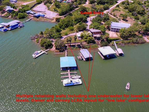 Vanishing Texas Marina. 273 feet of the deepest waters on big beautiful Lake Buchanan! Located in a large protected deep water cove this marina/residence is one of the most unique opportunities available on the water in Texas today. This property has 4 floating docks with the ability to tie off 22 boats. All docks are commercial grade; metal and cement. There is shore power for houseboats, multiple lifts and covered slips as well. The cement boat ramp has been extended into the water approx 100' to allow for launching when the lake is lower. Owner will convey LCRA approval and plans for "low lake configuration" of docks. Currently the water is 30' deep at the docks!! Multiple retaining walls, water well, septic, security gate and perimeter fencing all add to the usability of the property. Currently there is a mobile home in good condition and an all metal framing for a large house or office. This is a fantastic opportunity to own a one of a kind property with residential and commercial appeal. Located in a great area of the lake known for its scenic hill country views, deep water and proximity to lake attractions such as Garret Island, Fall Creek Waterfall, the Colorado River and some of the best fishing in Texas! At just a little over an hour West of Austin and approx an hour and a half North of San Antonio this property is with in reach of 1000's of potential boater/clients. Investment opportunity!!