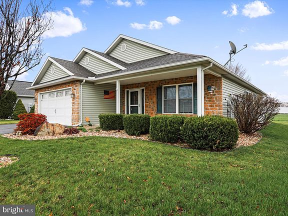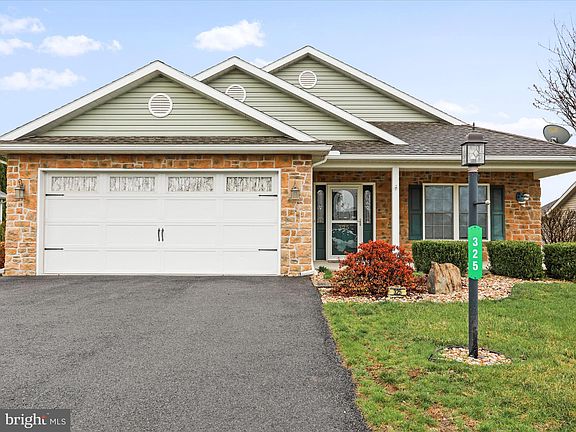 Well Maintained, one level detached rancher in the Enclave. Covered front porch that enters into a Great Room with Cathedral Ceilings and Propage Fireplace.( Seller does own the propane tank so it does convey). Seller upgraded her kitchen by adding a full wall of beautiful cabinetry . Eat in Kitchen with a door to a side covered porch. Another unusual feature for the area. is that it is a 3 bedroom & 2 Full Bathes that have seated showers. Everything is on the main level including washer and dryer that do convey. Newer water heater. Two car garage with Attic pull down stairs for storage. CHAMBERSBURG UTILITIES!!! Seller says average bill for trash, water sewer, electric is about $210 a month. So very low cost of living.