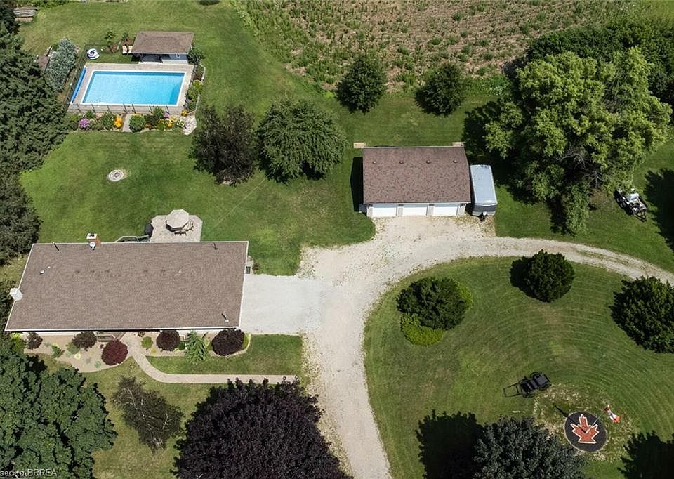Gorgeous 4 bedroom, 3 bath completely updated bungalow with a double oversized attached garage, 20x40 inground swimming pool, incredible detached 3 bay shop, all on a beautiful 1.29 acre parcel of land just on the outskirts of peaceful Mt. Pleasant! This property has it all! The handsome stonework with splash of siding matches perfectly with the detached shop & pool cabana. The beautiful glassed front door welcomes you into a home of luxury! You'll find elegant hardwood & tile flooring throughout the main floor, large living room with large window, long foyer takes you into the kitchen & dinette boasting hand-made cherry wood cabinetry with granite countertops, coffee station, pantries, many modern S/S appliances to stay, w/heated flooring. 3 good sized bedrooms with hardwood, the primary bedroom with 2 x dbl closets & a 2pc ensuite. There is a 4pc bath with solar tube and deep soaker tub with jets, headrest & all the bells & whistles. Main floor laundry w/GE washer/dryer to stay. 3pc washroom with rounded, glassed step in shower. Patio doors and 2nd rear door both off of kitchen to 2 decks (10.9x8) & (8x6) both overlook deep yard with 20x17 stone patio. Gas hook up for BBQ. The basement features a massive Rec Rm with pot lighting, quality laminate & far stone wall & hearth w/rustic wooden mantle w/gas fireplace. 4th bedroom down w/large window. Spacious partially finished storage room w/workbench, shelving furnace & extra wood burning stove. C/Vac. Pump room features top of the line water system w/sand filter, chlorine injection, etc. The pool area is perfect for entertaining with covered bar cabana! New liner in 2021. The large 24x36 3 bay shop has 220, LED lighting, all insulated/drywalled. All decks composite, soffit pot lighting, Strassburger windows throughout except LR. Extra insulation sprayed in. Security system & motion lighting at shop. So many updates! No expense spared! An absolute pleasure to show!