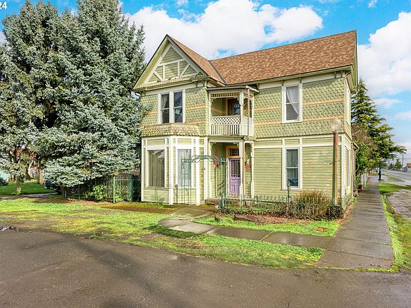 Craftsman home built in 1890 with lots of charm right in the town of Gervais. Fully equipped kitchen with stainless steel appliances, and huge pantry. Large formal dining room right off the kitchen with beamed ceiling and wainscoting. Large living room with bay window and den/parlor at the entrance. Large primary bedroom with separate staircase, luxury vinyl plank floors, vaulted ceiling, and closet. Large laundry/mudroom. Fully fenced backyard that has a large deck and two sheds! Historic horse hitching post and hand water pump in front yard! Close proximity to shopping and restaurant.