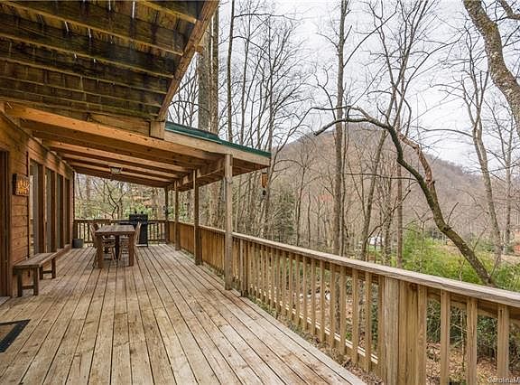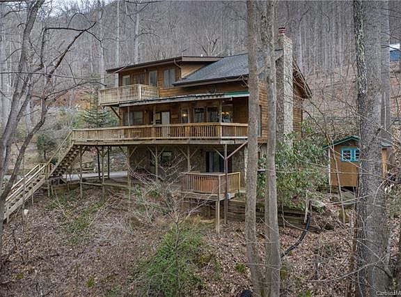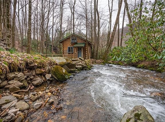 Incredible location! A contemporary home that sits overlooking rushing Fie Branch! Easy, paved access to this special creekside home. Features open living areas, stone to ceiling fireplace with wood burning fireplace, lots of glass on the creekside, & plenty of sleeping space (4 rooms currently for sleeping). Do not miss the 240 square foot creekside log, playhouse/camping cabin complete w/ wood stove and power! The large wrap around deck overlooks the creek! Sit in the hot tub off the lower level and listen to the rushing creek. One car garage and plenty of room for a workshop or storage. The home is being sold furnished & short term rentals are allowed.