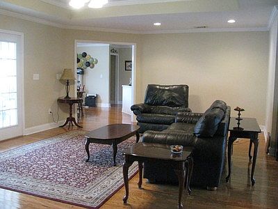 Large Custom Built Home on 3+/- Acres in Great Neighborhood! This brick and vinyl siding one owner home built in 2003 features 4 bedrooms and 3.5 baths and a bonus room for office/playroom or 5th bedroom. Home features approximately 3490 sq. ft on one level with wonderful open floor plan, lovely foyer entrance, formal dining room, large family room with fireplace and gas logs, kitchen with lots of custom cabinets, stainless steel appliances, and breakfast room. Home features crown molding, recess lighting, tray ceilings and much more. Wonderful split bedroom plan with master bedroom suite and large master bathroom with jetted tub, separate shower, double vanities, linen closets and a huge walk-in closet. Other features include separate laundry room, covered back patio, 2-car garage with extra storage room, nice large front yard and private wooded back yard. All this and more for a GREAT PRICE! Only $164,500.
