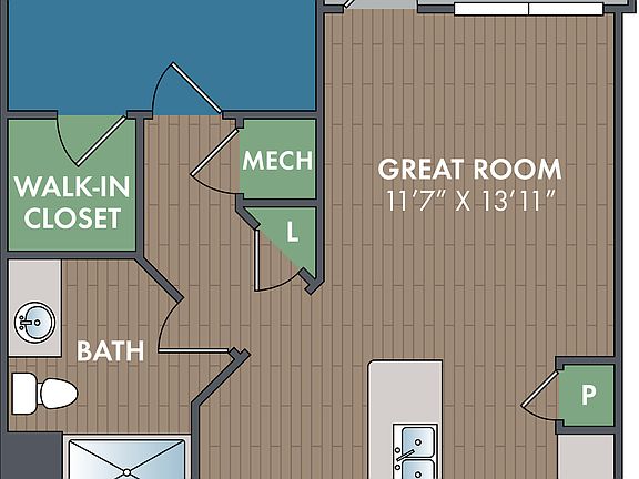 A lounge featuring billiards, demonstration kitchen, and luxury seating. Adrenaline Cardio and strength studio with separate fitness on-demand center. West Cary's first Sky Lounge with swanky seating and entertainment spaces. Elevator access with conditioned corridors. Valet trash removal. White Shaker cabinets or Slate Grey kitchen cabinets. Granite countertops, brushed nickel hardware and plumbing fixtures. Stainless steel appliances, subway tile backsplash, spacious walk-in closets, hardwood-style plank flooring throughout. Ceiling fans with light kits and wall controls in all bedrooms. Private patios and balconies and some with double sink bathroom vanities. Just 10 minutes from RDU International Airport, minutes from the RTP area. ADT Smart Home technology, including smart locks, smart thermostats and monitored alarms.