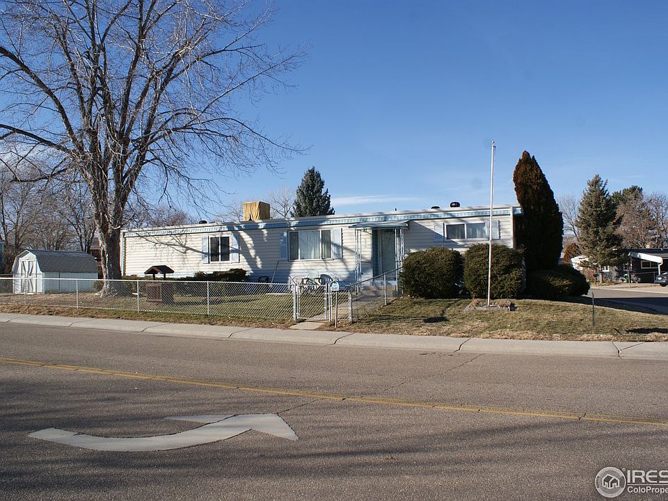1973 Manufactured home on its own lot - NO HOA or lot rent. 3 bedrooms + den. Newer roof. Interior original, but taken care of. Kitchen has pantry and all appliances are included. Half basement for extra storage (inside and outside access). Storage sheds (1 has power), covered patio, carport, fenced yard, corner lot. small town living with central location to Denver, Boulder, Longmont, Loveland and DIA.