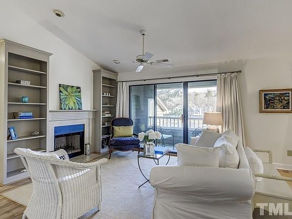 Fantastic 3rd floor unit overlooking lake in prime Cary location. Open floor plan. Hardwood style floors throughout most of home. Spacious family room features built-ins, vaulted ceiling & wood burning fireplace. Separate dining area. Eat-in kitchen offers granite tops, s/s appliances, center island & tile backsplash. New carpet in bedrooms. Master suite includes walk in closet. Great inside storage. Covered porch includes amazing lake views & separate locked entrance. Pool community.