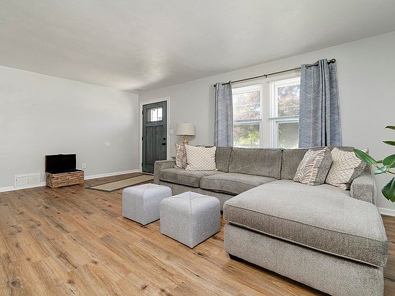This inviting home sits on a quiet street with great curb appeal and well-kept landscaping. Inside, enjoy a bright and spacious living room filled with natural light. The eat-in kitchen features stainless steel appliances and white cabinetry. There are two comfortable bedrooms and a full bath. The finished basement includes a family room, storage space, a partially finished extra room, and a half bath. Outside, the fenced backyard offers a patio area perfect for relaxing. Updates include newer windows, roof, siding, and water heater. A detached garage and concrete driveway add convenience. This home is meticulously maintained and ready for you to move in. Recent updates include new concrete surfaces, a fully replaced fence, and new exterior siding and doors that enhance both function and appearance. The water heater and water softener were installed in 2020, with a washer and dryer added in 2021. The AC unit is brand new as of 2024, and the furnace is 18 years old. The garage has been improved with a new door and windows, both installed in 2021. These thoughtful upgrades reflect quality care and attention throughout. Agent Owned.