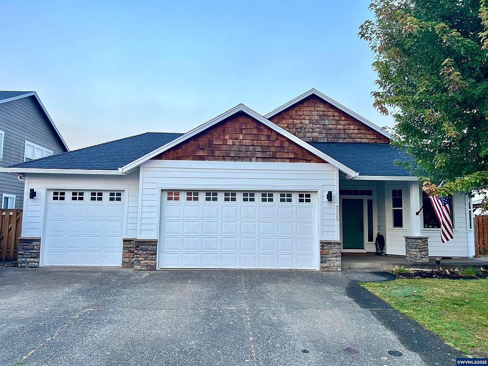 Accepted Offer with Contingencies. Looking for a home that feels brand new without the new-build wait? This 1,691 sq ft single-level gem in Aumsville features 3 bedrooms, 2 bathrooms, and a 3-car garage, along with an impressive list of high-end updates completed in just the last two years. Fresh interior and exterior paint, quartz counters in the kitchen and baths, all new appliances, and cabinets built to the ceiling create a bright, modern feel. Engineered hardwood floors, new bedroom carpet, and tile in the baths and laundry bring style and durability throughout.The primary suite boasts a brand-new tile shower, while encased windows in the living, kitchen, and sitting room add a polished touch. Even the garage is upgraded with a mini-split A/C and heater, and outside you’ll find a backyard shed and a spacious 20x21 concrete patio perfect for entertaining.This thoughtfully updated home blends modern style, functionality, and comfort—all on a single-level floor plan ideal for any stage of life. Located in charming Aumsville, you’ll enjoy the small-town vibe while being just minutes from all the amenities of Salem.