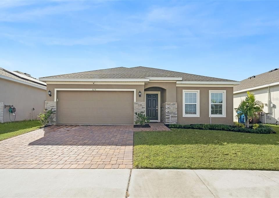 This is the one! Move-in ready beautiful ONE OWNER home built by Hanover Family Builders in 2021. The 'Selby Flex' floor plan features 4 bedrooms and 2 bathrooms. Beautifully appointed Orchid Terrace home with community Swimming Pool, Cabana, Playground and Dog Park. Spacious open floor plan filled with designer touches and modern lighting. Beautiful upgraded stone on the exterior (Elevation 1) with Brick Pavers on the Driveway and Entryway. The chef-inspired Kitchen is enhanced by stylish two-tone cabinetry by 'Timberlake'®, gold hardware and 42” upper cabinets with Crown Molding added. Upgraded gorgeous Quartz countertops and seamless backsplash. The focal point is the stunning QUARTZ WATERFALL drop Kitchen Island (with USB sockets) that easily accommodates FOUR bar stools - the perfect multipurpose hub! GE® Stainless Steel appliance package, recessed lights, pantry, 50/50 stainless steel undermount sink upgraded 'Kohler'® single-lever faucet with vegetable sprayer. The Owner’s Suite is a peaceful retreat with a stunning upgraded Wood Paneled accent wall. En-suite bathroom upgraded with stunning Granite Countertops and bowl sinks! Also featuring 'Kohler'® DTV Prompt® Digital Showering System, a digital one-touch control with LCD display which eliminates handles and knobs of a manual shower! Kohler ® rainhead shower and a large walk-in closet. Mohawk® Flooring throughout with LVP in all the Living areas. Upgraded 5 1/4" baseboards, whole house 'Snow White' 2” Faux Wood Blinds package. 9' 4" ceilings. ‘Mancave’ (Bedroom 4) with Shiplap accent wall – TV and Soundbar are included for your movie night. Enjoy your Backyard in your spacious Covered Lanai, it’s what living in The Sunshine State is all about! This property meets and exceeds! Stylish and well-maintained thanks to the current homeowners! Ideally located near top-rated schools, shopping and dining at Posner Park, hospitals, I-4 and world-class attractions including Disney, Universal, and Legoland. Location, Price, Condition - it's all right here for you! 50-gallon quick recovery hot water heater for great energy efficiency, attic venting with flow through soffits and minimum R30 attic insulation. CertainTeed ® Architectural Roof Shingles. A stone’s throw away from POSNER PARK SHOPPING CENTER: Target, JC Penney, Best Buy, Ross, ULTA Beauty, Dick's Sporting Goods, Chipotle, Culvers, Starbucks, Davenport Bar and Grill, First Watch and much more!!! POLK STATE COLLEGE is opening a 75,000 square foot CAMPUS only minutes away from this home with a focus on health sciences. ADVENT HEALTH facilities nearby. PUBLIX, Walmart, and LOWE's are less than three miles away.