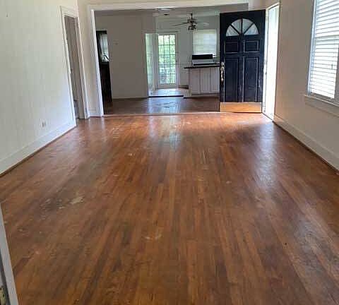 GREAT IN-TOWN LOCATION. HOUSE HAS LARGE LIVING/DINING AREA WITH KITCHEN SEPERATED BY BAR AND OUTSIDE KITCHEN DOOR SMALL DECK SITTING AREA. ALSO HAS STEP DOWN DEN AREA WITH FIREPLACE AND ENTRANCE TO THE TWO BACK DECKS. THREE GOOD-SIZED BEDROOMS AND ONE BATHROOM. HARDWOOD FLOORS, SMALL FENCED IN BACK YARD AREA. DECKS HAVE BEEN POWER WASHED