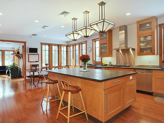 TRUE TO THE STYLE OF FRANK LLOYD WRIGHT THIS HOME IS ABSOLUTELY GORGEOUS AND PERFECTLY SITED ON A WOODY LOT JUST 10 MINUTES FROM THE GEORGE WASHINGTON BRIDGE. 6 BEDROOMS, 4 FULL BATHS, HUGE AND BEAUTIFUL KITCHEN, WINE CELLAR ... A wonderful example of mid-century design, but built in 2002. MY ARCHITECT AGREES THAT THIS HOME IS ... PERFECTLY IN SYNC WITH THE FLW AESTHETIC. .(exclusions continued from above 2 powder room mirrors, audio/video equipment